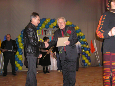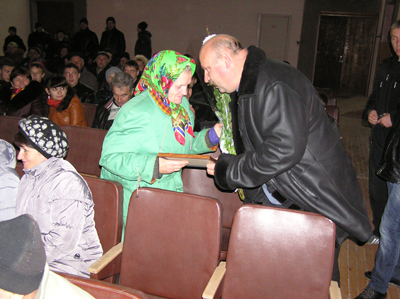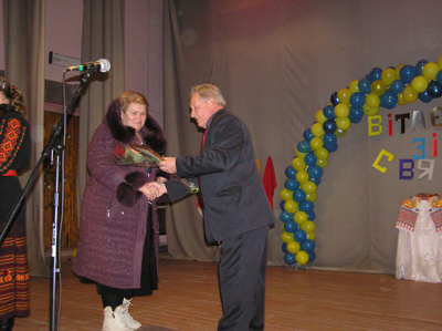 Однак люди не поспішали зайти до залу. Спочатку всі з запаленими свічками під проводом настоятеля Синельниківського храму отця Сергія та монашок Свято-Знаменівського жіночого монастиря начолі з настоятельницею попрямували до Поклінного хреста. Там в урочистій вечірній тиші відслужили вдячний молебень, дякуючи Богу за посланий добрий урожай. Поклонились і кам’яній плиті в знак пам’яті тих земляків, яких сьогодні вже немає на цьому світі, але пам’ять про їх добрі справи буде вічною. А далі розпочалась святкова програма. На сцену запросили голову ВСК „Україна” Георгія Колпака, який уже 29 років очолює підприємство. Йому приємно було повідомити землякам, що цього року зібрано 6600 тонн зерна, це майже у два рази більше, ніж будь коли за всі роки незалежності України, продано 130 тонн м’яса свиней у живій вазі. Завдяки отриманій продукції господарство регулярно і своєчасно виплачує заробітну плату, в повному обсязі розрахувалось з пайовиками, виплативши майже 3 мільйони 800 тисяч гривень. Традиційно не підвели цього року польоводи, які по врожайності зернових міцно облаштувалися у першій п’ятірці агроформувань району. А от свинарська галузь приємно здивувала, за десять місяців реалізувавши продукції на 2 мільйони 270 тисяч гривень. Це безумовна заслуга всього колективу ферми, завідуючої Тетяни Мороз, Сергія Лепідька ветеринарів подружжя Кириченків, які грамотно склали раціони, вміло організували процеси. До речі, сьогодні м’ясокомбінати за свининою ВСК „Україна” стоять у черзі, бо такого якісного м’яса на ринку дуже мало. Закладено основу майбутнього врожаю: посіяно 1000 гектарів пшениці, 200 гектарів озимого ячменю, створено запас пального, добрив, насіння. А далі пішли нагородження кращих з кращих членів сільгоспкооперативу. Подяками правління нагороджені Наталія Кириченко, Віра Мамченко, Микола Ковальчук, Володимир Усик, Сергій Швороб, Григорій Макогон, Сергій Федірко, Ігор Тітов, Наталя Цяцька, Микола Сніпич, Ольга Танчик, Тетяна Гринишина, Олександр Криніцин, Тетяна Охрицька, Богдан Харченко, Сергій Цяцька. І це далеко не всі кращі працівники, які відзначились високою продуктивністю праці. Тому Георгій Васильович пообіцяв, що ніхто не залишиться без уваги і на всіх сумлінних працівників чекає приємний сюрприз – тринадцята заробітна плата в кінці року. Причому, коли торік на це витратили 160 тисяч гривень, то зараз планується не менше 300-т тисяч. Для кожного того вечора знайшлося добре слово. Наприклад, 28 років у господарстві працює інженер з експлуатації автотракторного парку Микола Ковальчук, виховав синів, які також продовжують справу батька. Тільки-но прийшов працювати у кооператив молодий головний інженер Віталій Рєзніченко. Добре знають у Великомихайлівці трудову династію Музиків. І коли на сцену піднявся Ігор, котрий працює механізатором, разом з мамою та бабусею, зал аплодував їм довгими гучними оплесками. Знаючий спеціаліст, дока в техніці Олександр Усик. Справжній прикордонник на посту Іван Скачок, який оберігає майно господарства, та ще й слідкує за дотриманням техніки безпеки. Тонкий психолог, організатор, який уміє спрямувати зусилля людей у потрібне русло - керівник ремонтно-будівельної бригади Олександр Ткач. Його девіз, як у піонерів – „завжди готовий”. Хоча свій колектив він жартома називає виховально